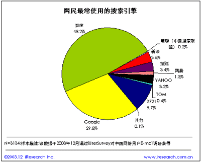 國內幾大搜索引擎使用比例的市場調查: